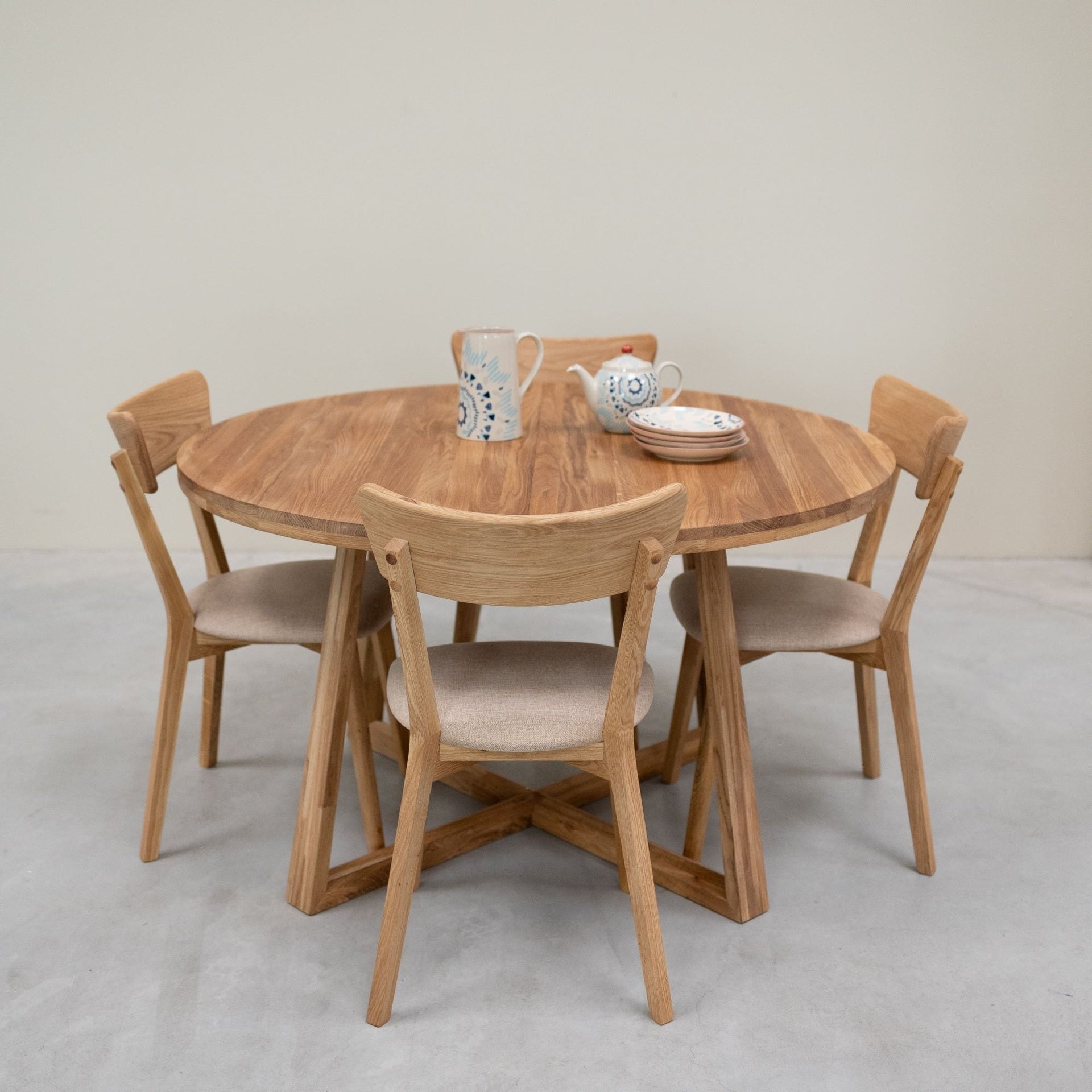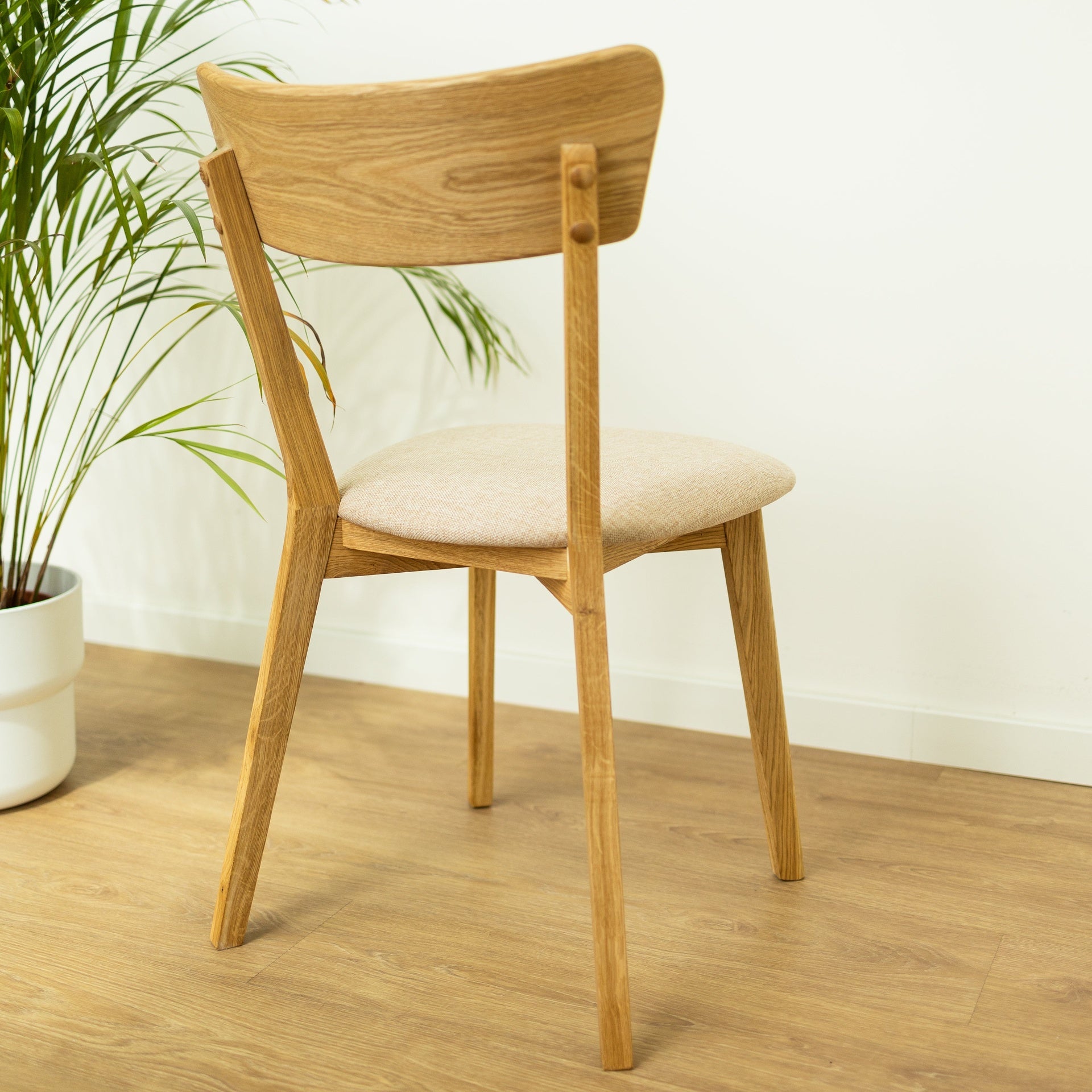Materiaal: Massief eikenhout in natuurlijke kleur, gestoffeerd in beige.