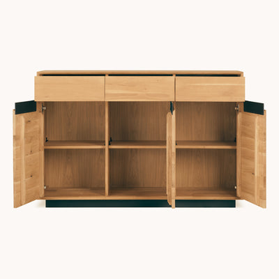 De TV-kast "Geneva van NordicStory, gemaakt van massief eiken, combineert elegant design en functionaliteit. Het is verkrijgbaar in de maten 160 cm en 180 cm en biedt voldoende opbergruimte voor serviesgoed, tafellinnen en huishoudelijke artikelen. De natuurlijke, geoliede afwerking benadrukt de schoonheid van eikenhout en geeft hedendaagse en Scandinavische ruimtes een warme, moderne uitstraling . Perfect voor woonkamers die op zoek zijn naar duurzaamheid, kwaliteit en tijdloos Scandinavisch design.