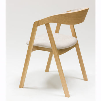 De stoel is gemaakt van massief eikenhout Knut stoel stoel elegantie en robuustheid. Met een keuze uit beige of antracietgrijze bekleding harmonieert hij perfect met de natuurlijke warmte van het hout. De brede en knusse zitting biedt optimaal comfort, ideaal voor lange zitsessies rond de tafel. De strakke lijnen van het ontwerp onderstrepen een moderne esthetiek met behoud van een tijdloze charme, waardoor deze stoel een verfijnde toevoeging is aan elke woonruimte.